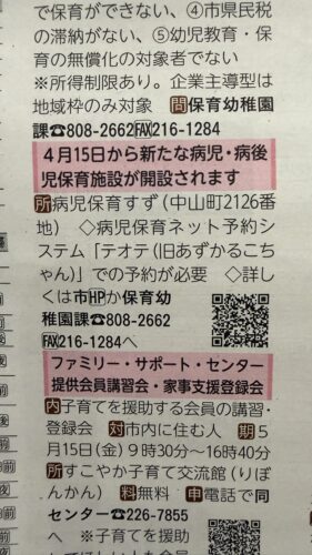 かごしま市民のひろばで、病児保育すず開設のお知らせしていただきました。